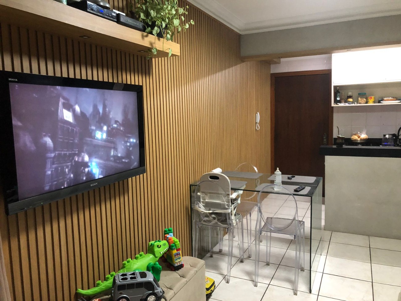 Possui sacada lateral e box térreo para carro, oferecendo praticidade e conforto.