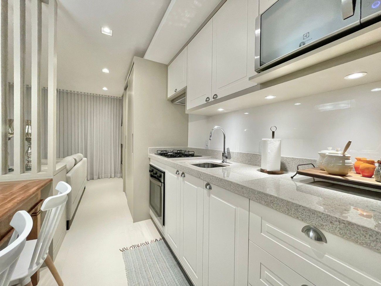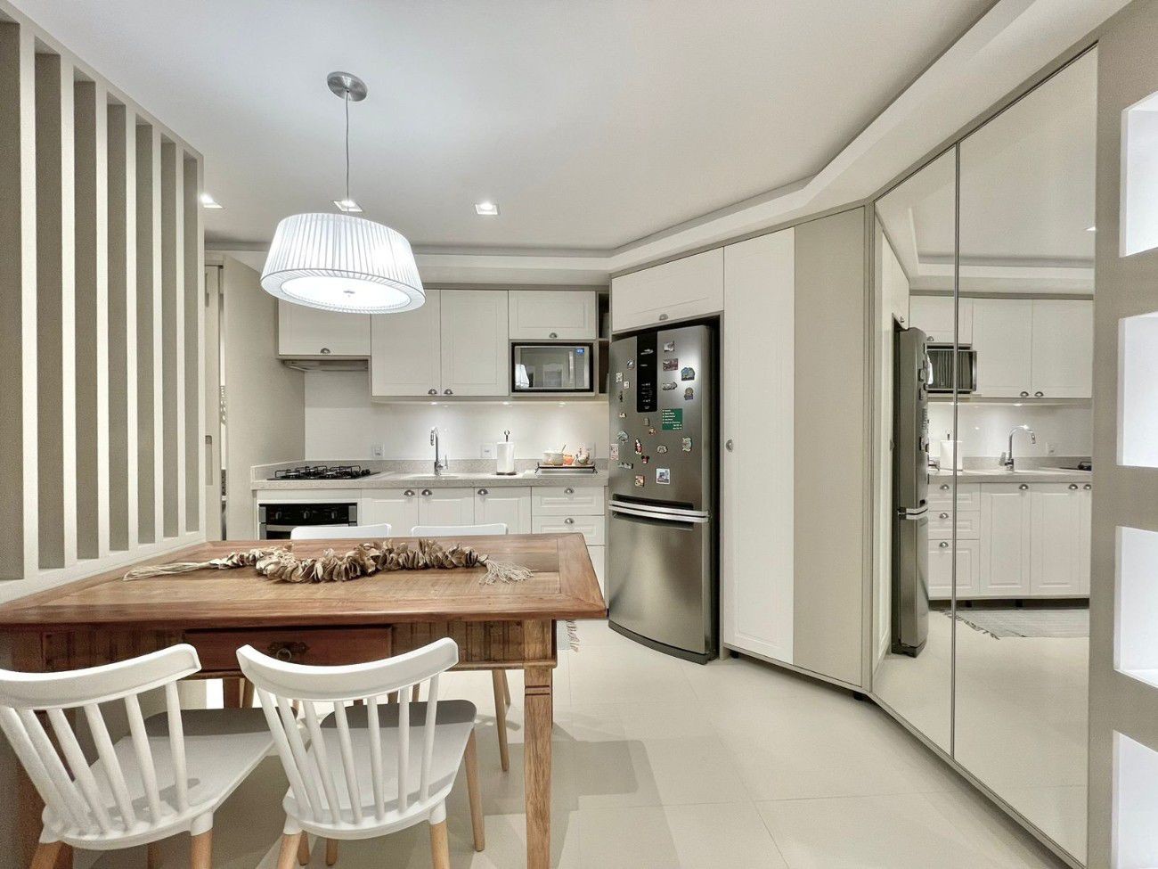 O imóvel conta com um living aconchegante e bem iluminado, integrado à sala de jantar, criando um ambiente moderno e funcional. A cozinha é planejada, com excelente aproveitamento de espaço, bancada em granito e eletrodomésticos embutidos, ideal para o dia a dia.