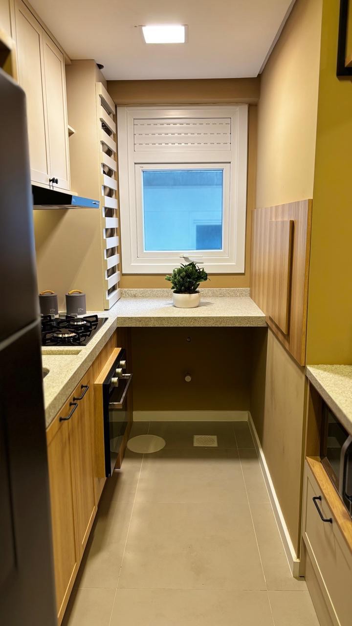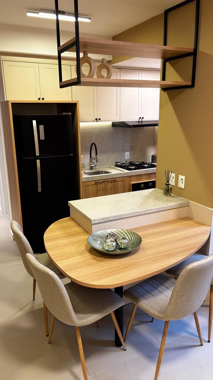 São 2 dormitórios, sendo 1 suíte, banheiro social, cozinha americana e um living amplo em 3 ambientes, perfeito para receber a família e aproveitar cada momento. Totalmente mobiliado e decorado, é só entrar e morar.