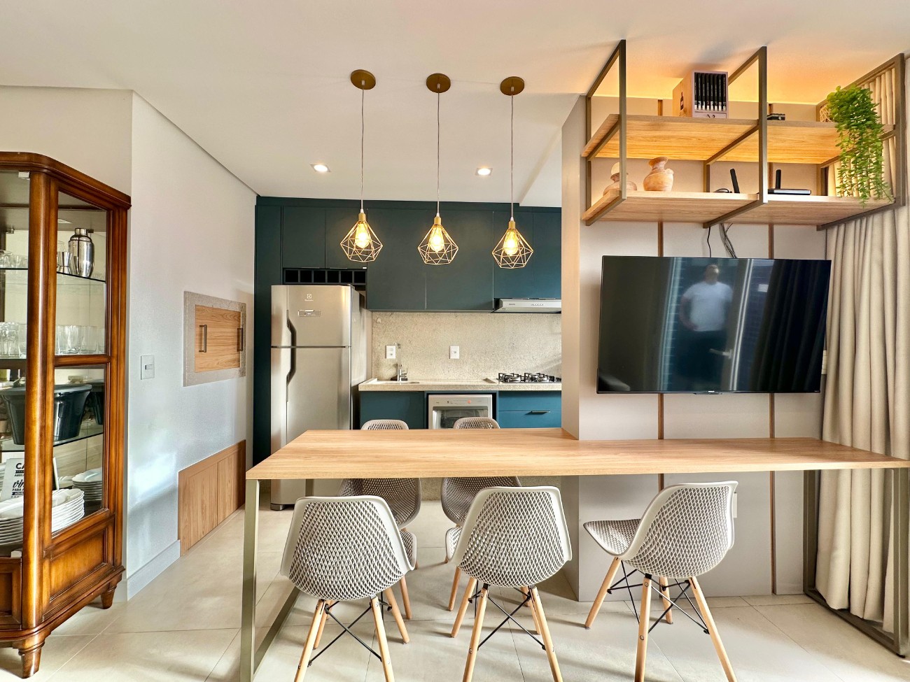 Living integrado com estar e jantar, oferecendo conforto e elegância.