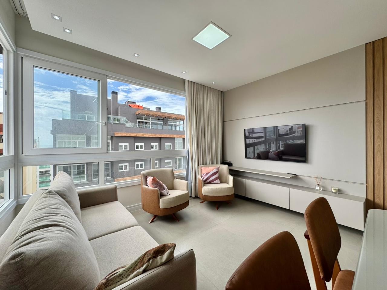 Apartamento de três dormitórios, sendo uma suíte, finamente mobiliado e decorado. Localizado em edifício de alto padrão com infraestrutura completa, incluindo piscina, salão de festas e academia. Ao lado da praça e a poucos metros do mar, em uma das áreas mais valorizadas da cidade.