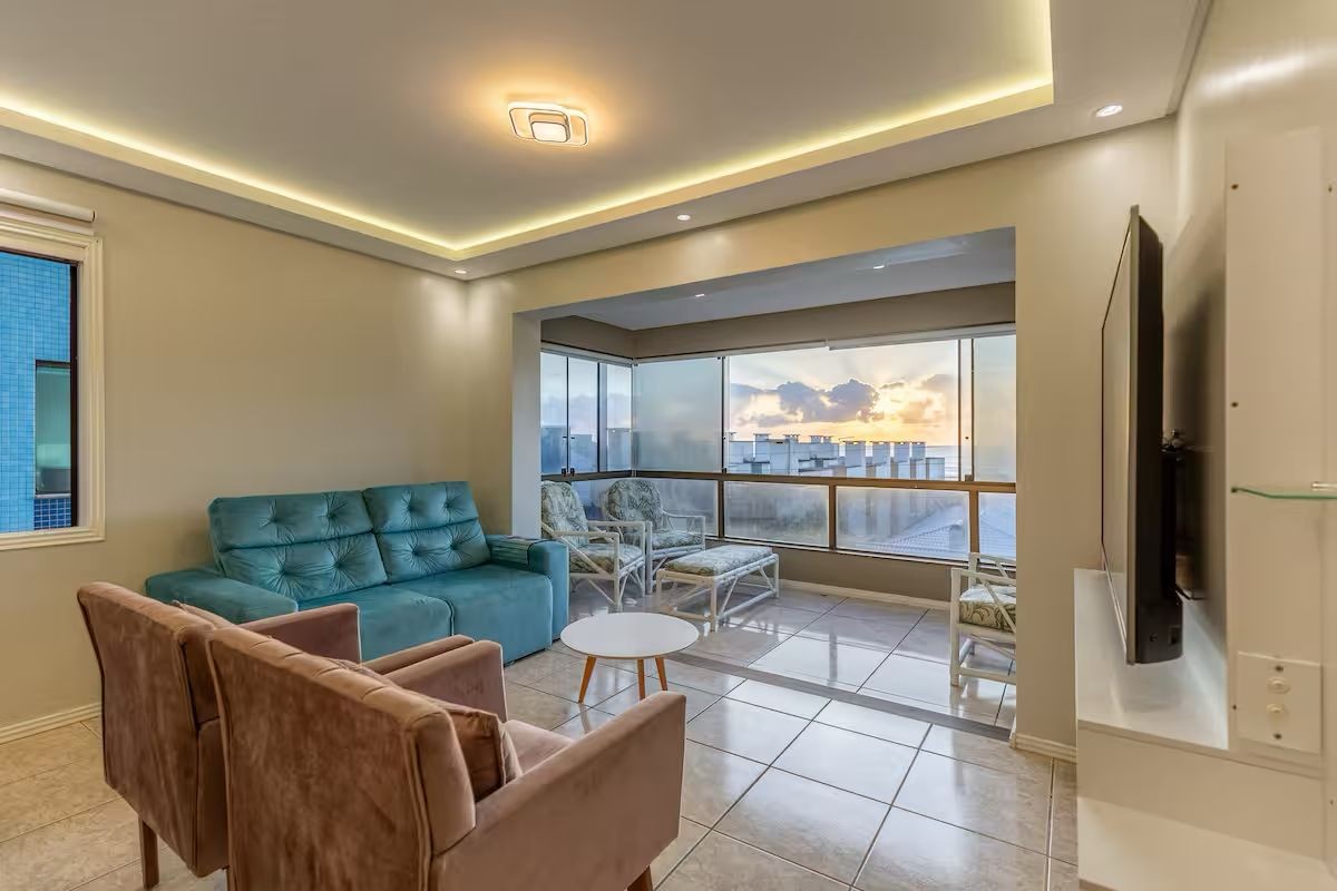 Apartamento composto por 3 dormitórios, sendo 1 suíte, 02 box de estacionamento, banho social, living em 2 ambientes, sacada de frente separada com churrasqueira, cozinha separada, área de serviço, mobiliado, bem iluminado e ventilado, em andar alto com vista definida para o mar e novo calçadão, na melhor posição solar da praia leste/norte. Edifício com a fachada revestida em pastilhas ngk, elevador digital, portão e porteiro eletrônicos, zeladoria permanente. Não perca esta bela oferta! Estuda financiamento bancário. Entre em contato para mais informações..