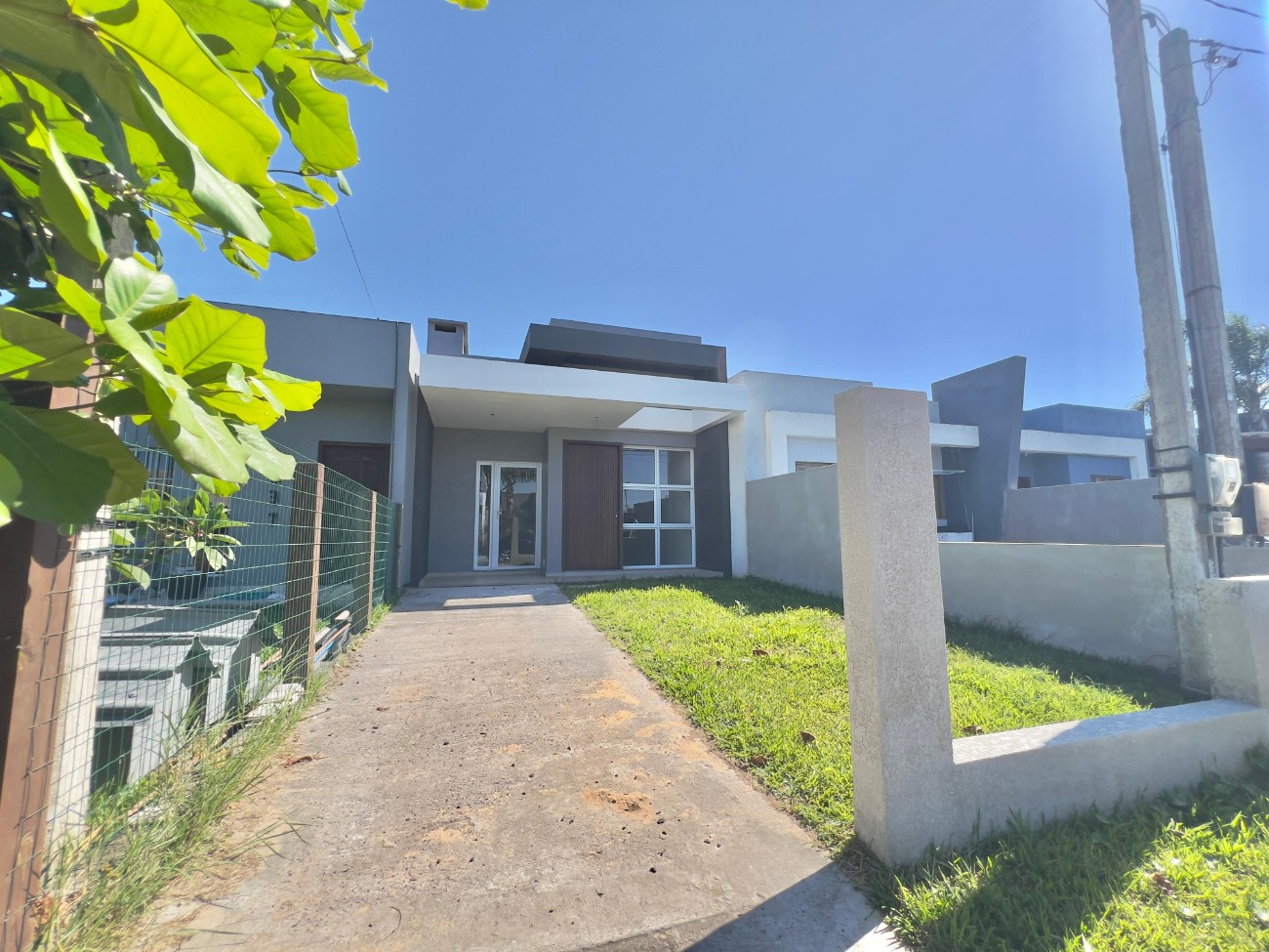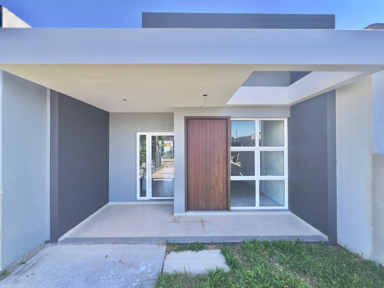 Casa nova pronta para morar, com 85,20 m² de área total e 78,00 m² de área privativa, projetada para oferecer conforto, modernidade e excelente padrão construtivo, composta por dois dormitórios, sendo uma suíte, banheiro social, living com pé-direito alto que proporciona maior amplitude e iluminação natural, acabamento em rebaixo de gesso, piso em porcelanato em todos os ambientes, rodapés em PVC, todos os cômodos com espera para ar-condicionado e sistema de chave hotel, lavanderia localizada dentro da residência, espaço gourmet com churrasqueira equipada com bifeteira, esquadrias em alumínio e porta principal laqueada em madeira de itaúba, imóvel com documentação totalmente regularizada, pronto para financiamento e ideal para quem busca morar com praticidade, segurança e qualidade.