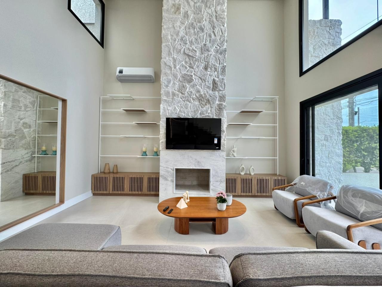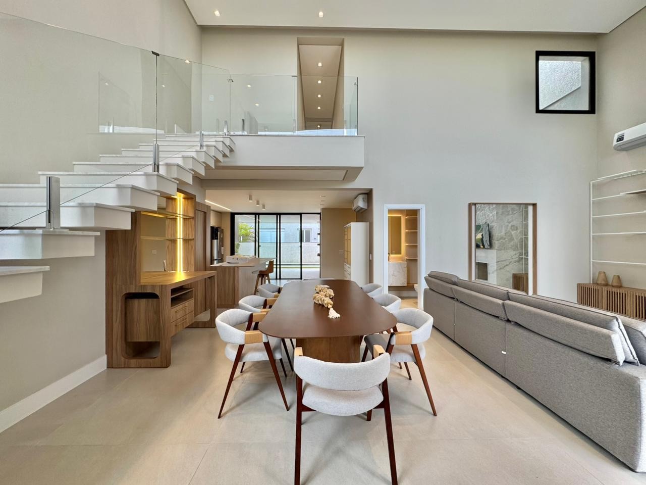 Casa mobiliada e decorada, com 5 dormitórios sendo 5 suítes, além de lavabo, todos os ambientes climatizados. Conta com piscina aquecida e sistema fotovoltaico, unindo conforto e sustentabilidade. Localizada em condomínio fechado com infraestrutura completa: salões de festas, quadras esportivas, restaurante, segurança 24 horas e praia artificial. Ideal para quem busca exclusividade, lazer e qualidade de vida.