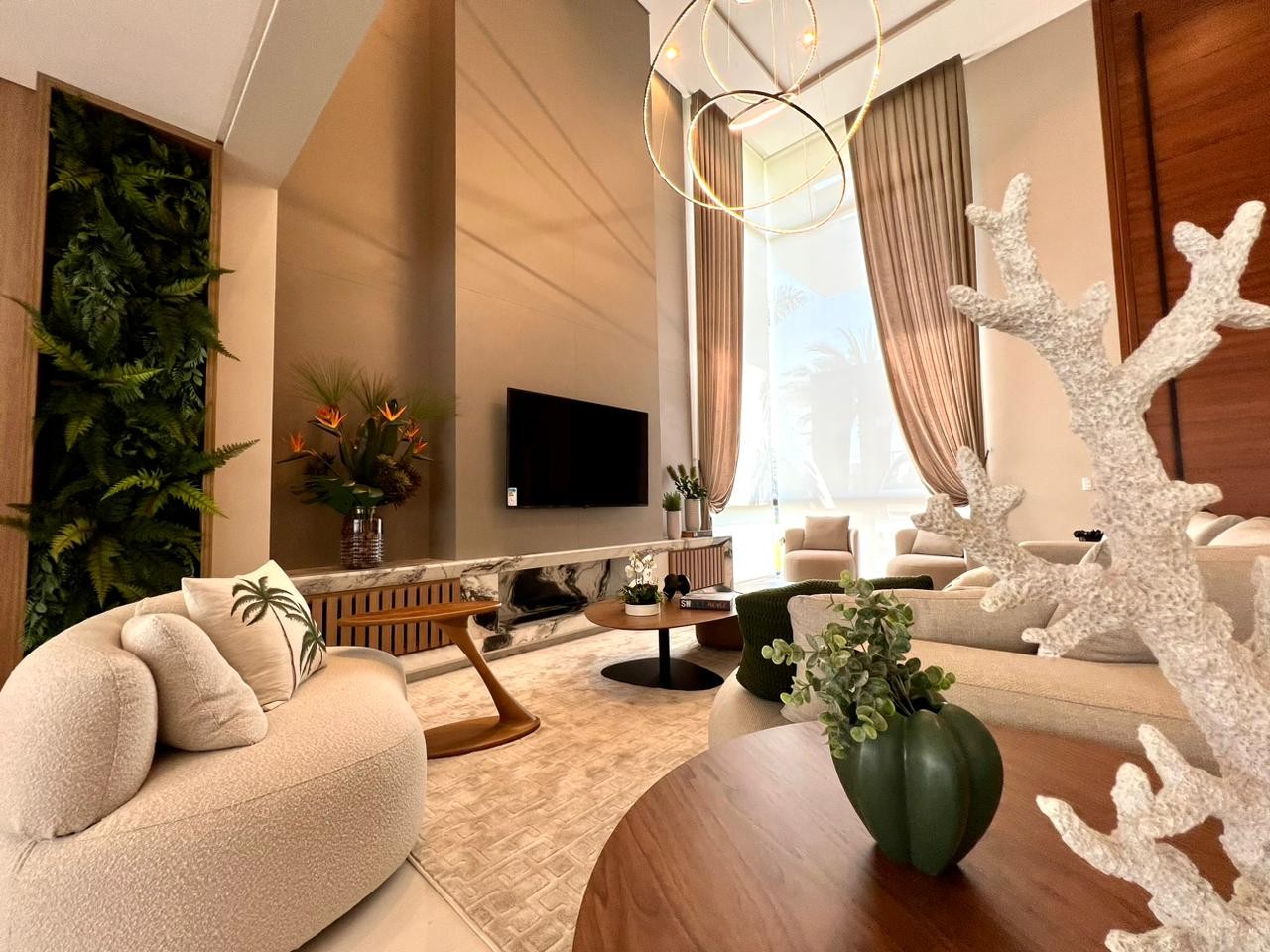 Esta deslumbrante residência de alto padrão, com 426m², apresenta um design que harmoniza luxo e funcionalidade em cada detalhe. Com cinco suítes, incluindo uma master térrea para máxima comodidade, este lar oferece um refúgio de elegância e conforto. A sala de jantar e sala de estar proporcionam espaços generosos para receber amigos e familiares, enquanto o cinema oferece entretenimento de primeira classe. O gourmet integrado à área de lazer é perfeito para momentos de convívio, complementado pela piscina de concreto com borda infinita e cascata, criando um ambiente de relaxamento exclusivo. Além disso, com um jardim com irrigação automatizada e espera para sistema fotovoltaico, esta residência é uma verdadeira expressão de sofisticação e sustentabilidade. Com uma localização privilegiada e sendo vendida completamente mobiliada e decorada, esta é uma oportunidade única de adquirir um imóvel que excede todas as expectativas de luxo e conforto. Agende sua visita e apaixone-se por esta obra-prima arquitetônica.
