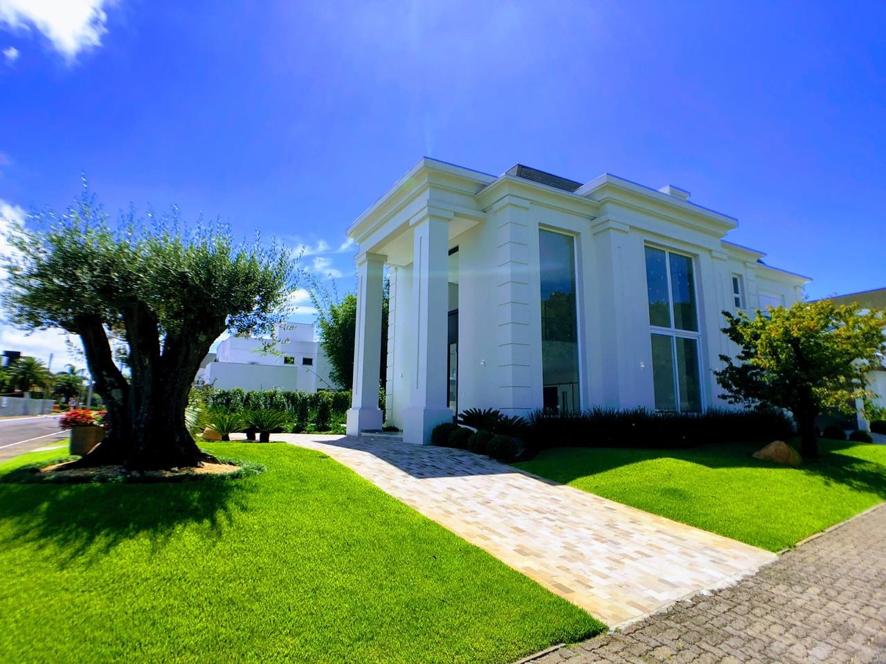 Velas da marina!! Um dos únicos condomínios com acesso direto a lagoa, com total infraestrutura, luxuoso sobrado de esquina em ótima localização, fino acabamento, imóvel bem distribuído com peças amplas, composto por 5 suítes sendo uma master, 1 térrea, living amplo em 4 ambientes cozinha copa, espaço gourmet com churrasqueira, área de serviço, mais dependência de empregada, persianas automatizadas, garagem fechada para 2 carros, piscina, lindíssimo jardim com irrigação automatizada.