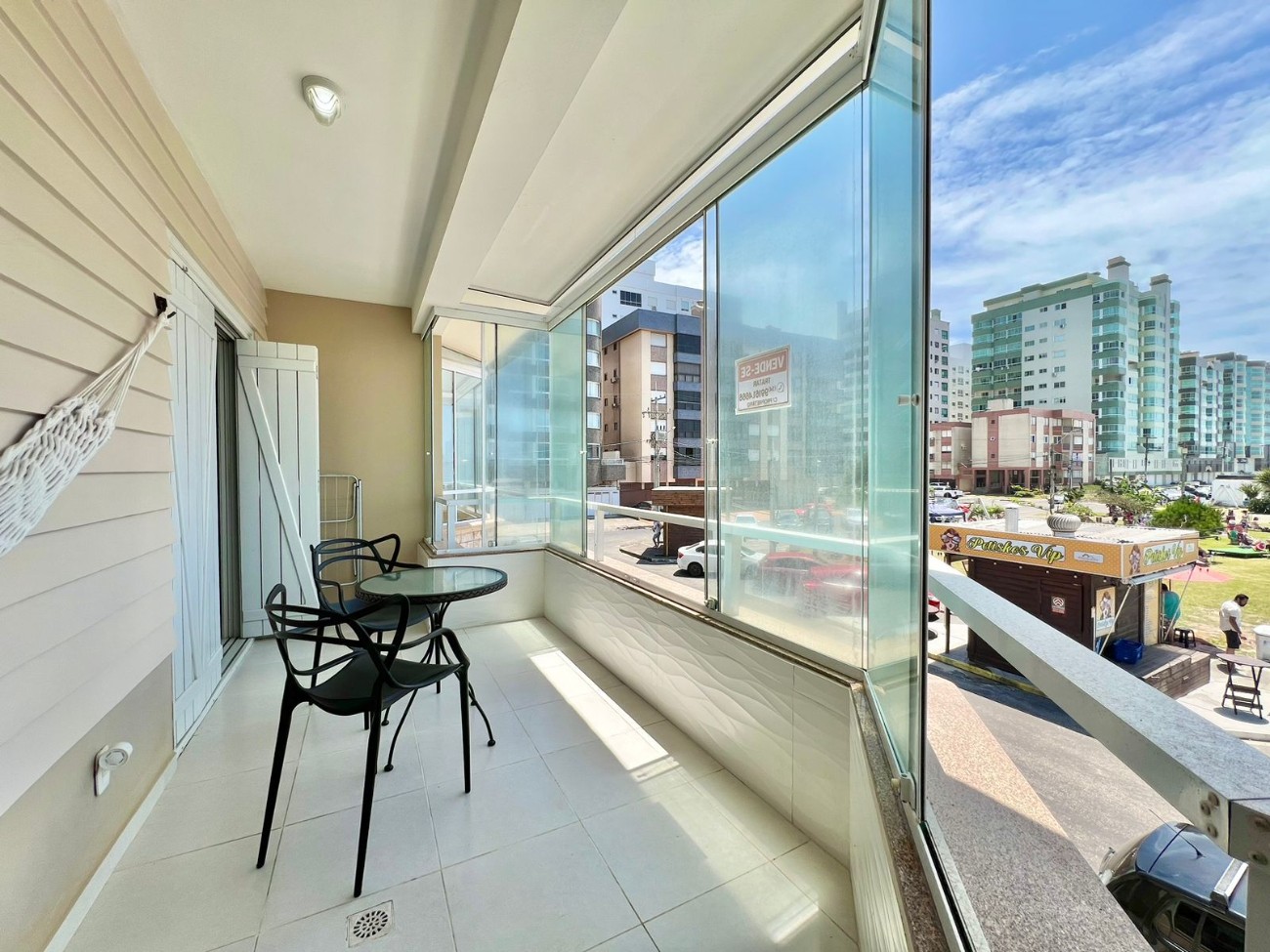 São três dormitórios, sendo uma suíte com varanda frente mar e praça.