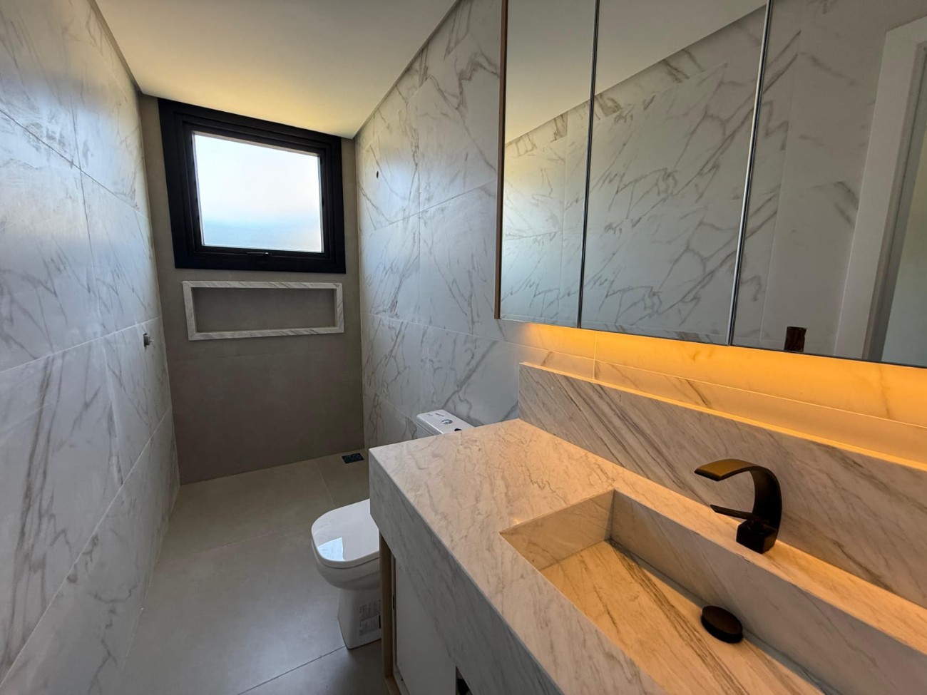 O imóvel é constituído de 4 suítes independentes, garantindo privacidade e conforto para toda a família, living amplo com dois ambientes integrados – sala de estar com lareira e sala de jantar, cozinha americana moderna com churrasqueira, ideal para quem gosta de praticidade e integração, lavabo para visitas, área de serviço separada e duas vagas de garagem.